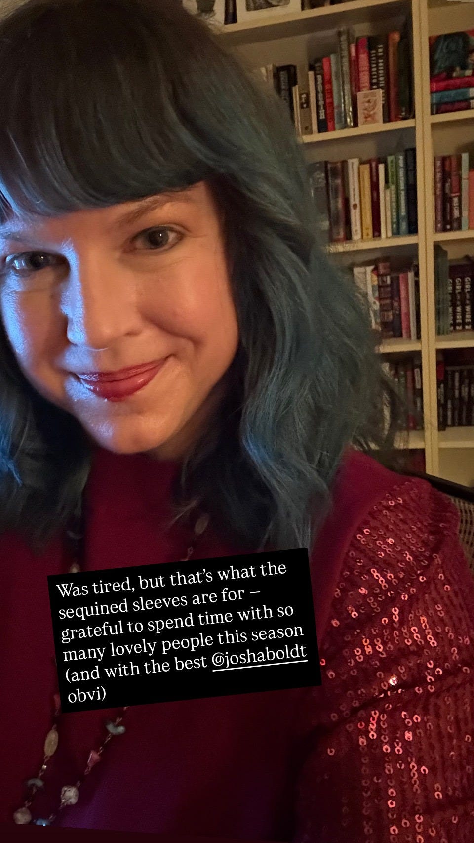 This has been such a busy holiday season, more than I can remember, so much so not everything has been doable. It is a great feeling to skip things, sometimes, to sit and read or watch five episodes of Jeopardy in a row. But the thing is? I adore all these people. So it’s also been truly great to see some people more than I usually do and other people I see often but never enough and to see everyone’s holiday decor and make each other laugh and tell stories and drink and eat too much cheese and sweets, et cetera, ad infinitum. (That bread pudding last night! To! Die! Josh’s ginger cookies! Give me!)
